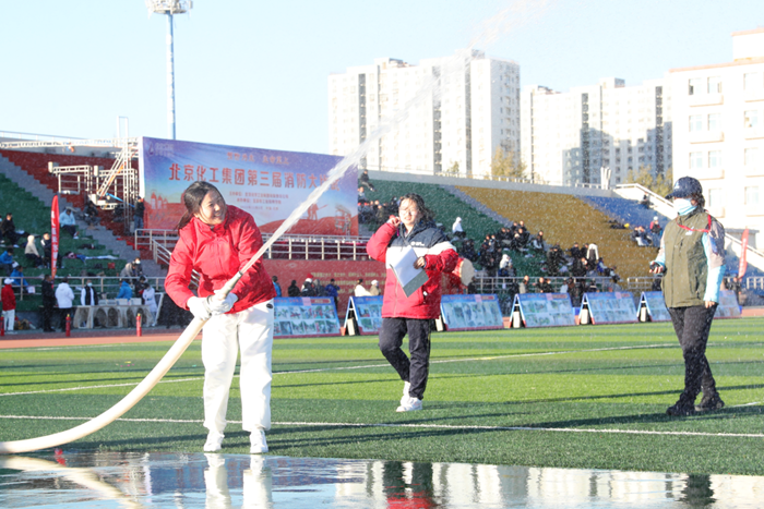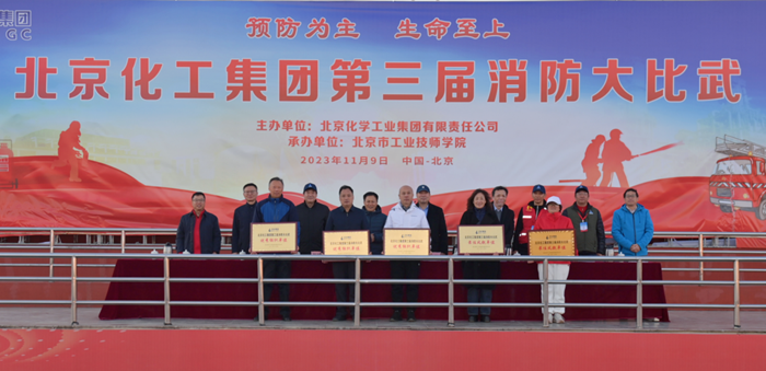 在全國第32個(gè)“119”消防宣傳日當(dāng)天,北京化工集團(tuán)第三屆消防大比武在技師學(xué)院舉辦,黨委書記、董事長陳宇致開幕詞,黨委副書記吳瑞峰主持開幕式并致閉幕詞,黨委常委、副總經(jīng)理韓寶海主持閉幕式,來自全系統(tǒng)的350多名職工參加大比武。