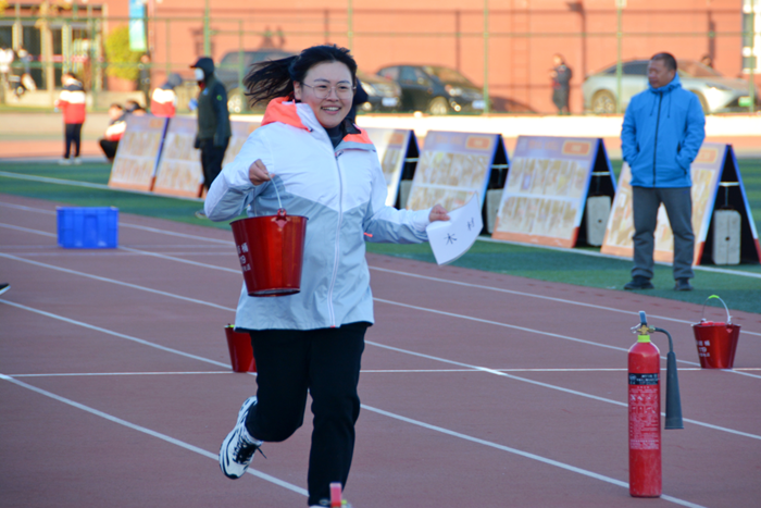 提桶百米沖刺、最短時(shí)間銜接水帶、快速穿戴防護(hù)服……在一浪高過一浪的加油聲中,參賽選手你爭我奪,觀眾們加油鼓勁,整個(gè)賽場呈現(xiàn)出一派熱火朝天的景象,比賽項(xiàng)目契合生產(chǎn)、消防實(shí)際,比賽過程較真碰硬,大家你追我趕、奮勇爭先,比出了安全技能,比出了干事創(chuàng)業(yè)的熱情,在大比武的擂臺上,北化人士氣高漲!