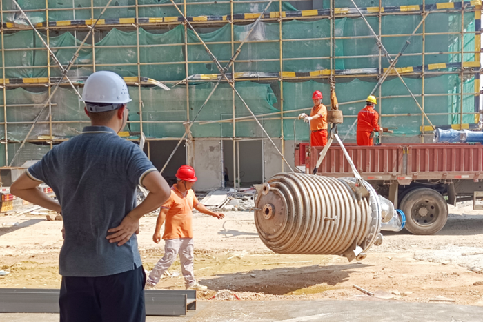 隨著首批主體設(shè)備運(yùn)輸?shù)綀?chǎng),土建施工及工藝安裝處于交叉作業(yè)階段,存在著工作面大,內(nèi)容復(fù)雜的情況。為保證施工安全和工作效率,項(xiàng)目小組多次組織召開(kāi)施工單位協(xié)調(diào)調(diào)度會(huì),對(duì)交叉作業(yè)面、場(chǎng)地移交、預(yù)埋件及預(yù)留孔留置等問(wèn)題進(jìn)行技術(shù)溝通和梳理,做足前期準(zhǔn)備和協(xié)調(diào)安排,有效防止了施工單位作業(yè)重疊、效率降低、推諉扯皮等情況的發(fā)生,保證了工程進(jìn)度如期進(jìn)行。