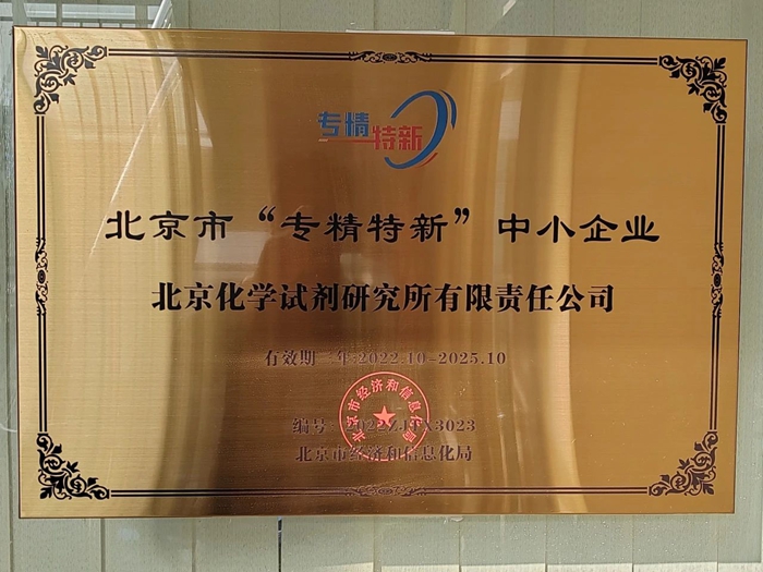 2021年至2024年,試劑所共取得發(fā)明專利授權(quán)7項,實用新型專利11項,其中2024年新授權(quán)發(fā)明專利2項,另有3項發(fā)明專利正在評審中。2022年10月,是值得試劑所干部職工銘記的一個金秋。在這天朗氣清的十月,試劑所被北京市經(jīng)濟和信息化局授予“專精特新”中小企業(yè)。這一有著強烈時代特色,代表著新質(zhì)生產(chǎn)力發(fā)展方向的資質(zhì),是對這家有著60余年發(fā)展歷史的科研型企業(yè),以科技為引領,深耕試劑產(chǎn)業(yè)鏈的最大肯定和褒獎。