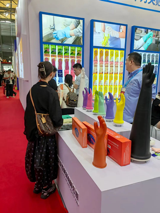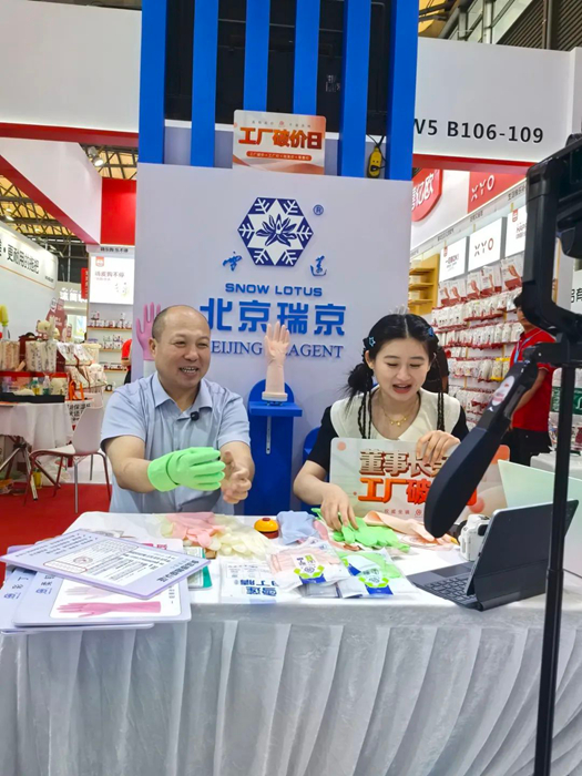 通過(guò)現(xiàn)場(chǎng)試用體驗(yàn)、功能演示等互動(dòng)環(huán)節(jié),瑞京公司人員向觀眾直觀呈現(xiàn)出產(chǎn)品的舒適性和防護(hù)性能,吸引了眾多客商駐足咨詢。公司產(chǎn)品獲得現(xiàn)場(chǎng)觀眾的一致好評(píng),同時(shí)進(jìn)一步鞏固了瑞京公司在乳膠手套領(lǐng)域的品牌影響力。