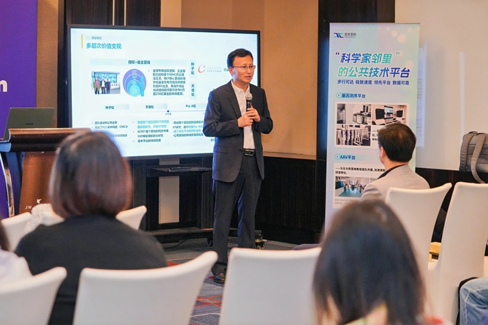 論壇中,北化生科黨總支書記、總經(jīng)理申海成從專業(yè)運營空間、專業(yè)運營團隊和專項產(chǎn)業(yè)基金等多個方面,深度聚焦以核酸藥物為代表的五大細分賽道,向與會者詮釋“國際生物島”獨有的“1公里科學家鄰里”生態(tài),并通過高標準技術平臺、專項基金、技術審評、專屬空間、高科技人才和公共服務六大生態(tài)要素協(xié)同,系統(tǒng)闡釋從“0-1-N”的產(chǎn)業(yè)化路徑。